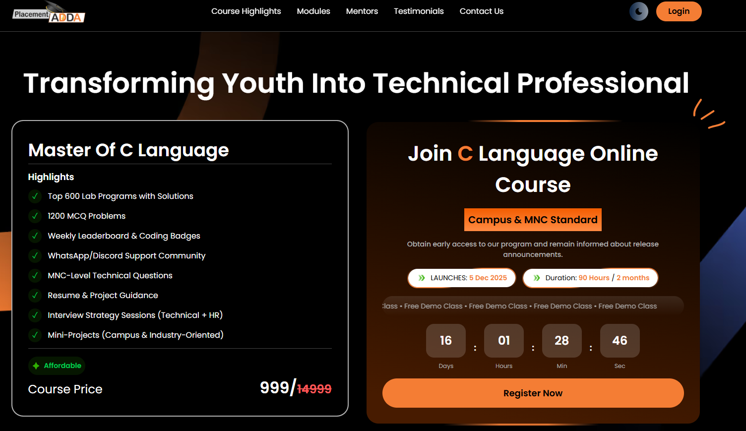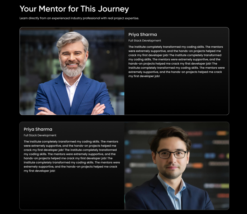 - 🎯 High-Conversion Landing Page: Structured sections for courses, mentors, testimonials, and contact