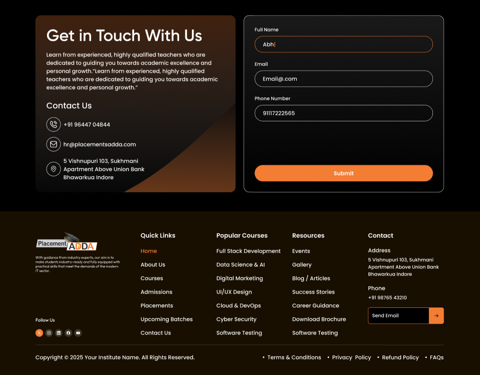 A modern, conversion-focused landing page built for a professional **Coaching Institute**, designed to attract students and clearly present courses, mentorship quality, and career outcomes.