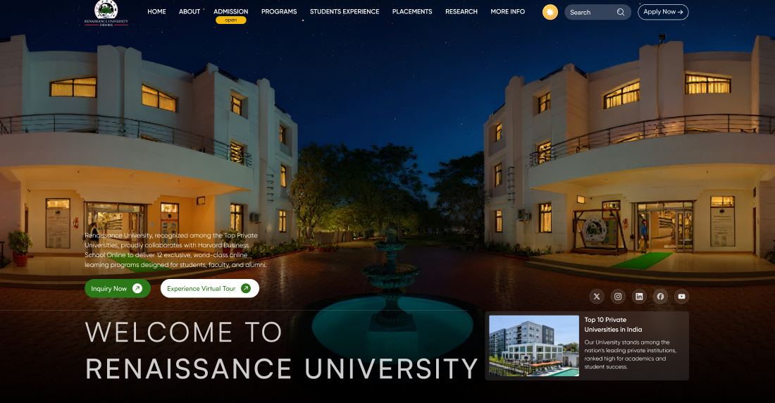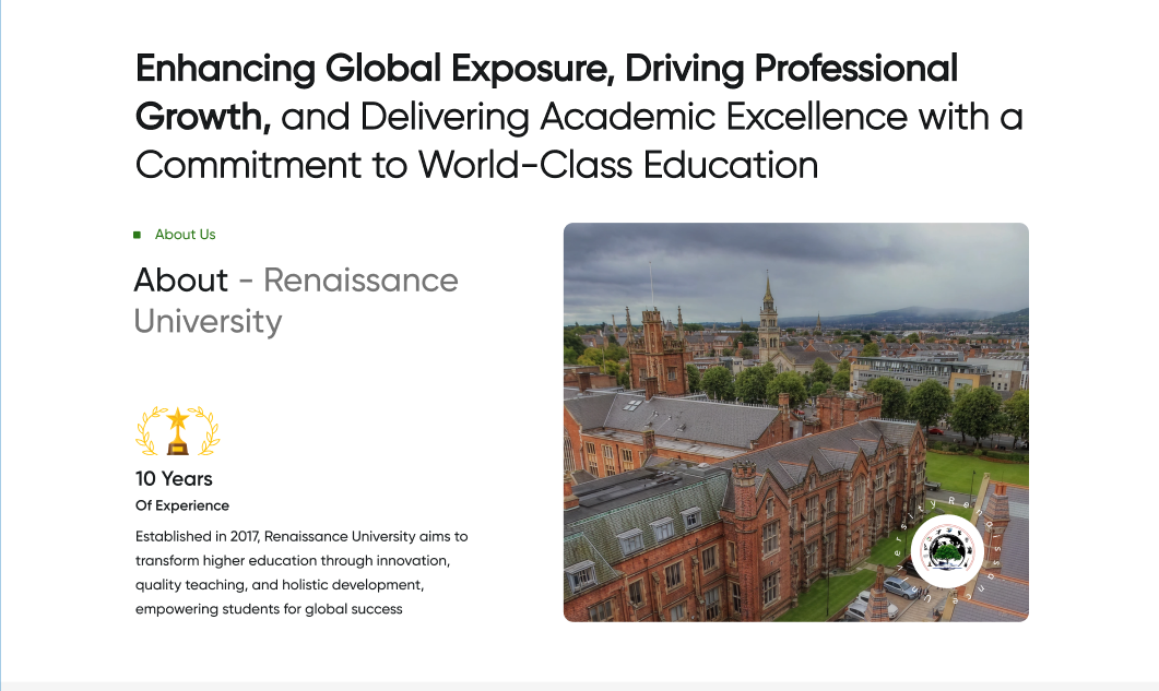 A full-scale, interactive university website developed for Renaissance University to deliver a modern, engaging, and informative digital experience. The platform is designed to represent a real-world academic website with premium UI, smooth animations, and SEO-friendly architecture.